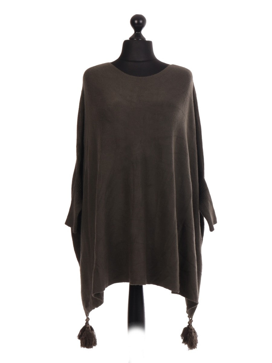 Elevate your wardrobe with the khaki Italian Batwing Tassels Poncho. Crafted with expert attention to detail, this poncho features a flowing batwing silhouette that offers both comfort and style. The delicate tassel accents add a refined touch, making it a versatile piece for layering in cooler weather. Perfect for those seeking a sophisticated yet relaxed look, this poncho combines Italian design elegance with practical wearability.