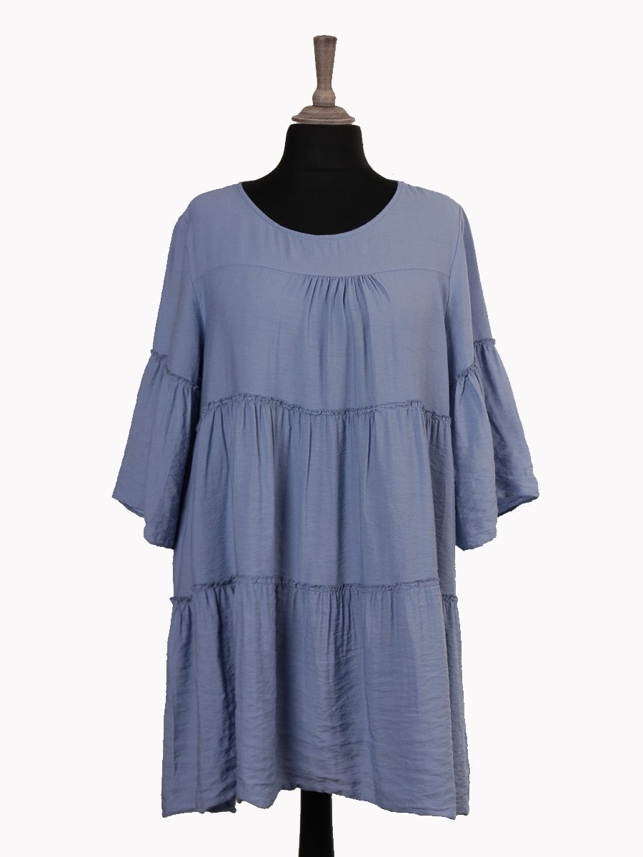 Elevate your wardrobe with the Denim Italian Bell Sleeves Tiered Smock Top, expertly crafted for a refined yet relaxed silhouette. Featuring elegant bell sleeves and a tiered smock design, this top offers both comfort and a flattering fit. Its lightweight fabric ensures breathability, making it ideal for transitional seasons. Perfect for pairing with tailored trousers or casual jeans, this versatile piece adds a sophisticated touch to any outfit.