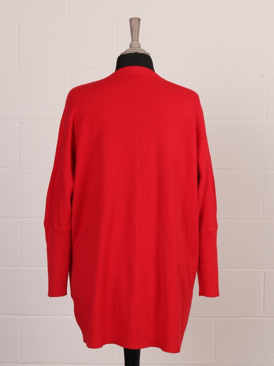 Crafted with fine Italian yarn, this red cable knitted batwing jumper combines traditional knitting techniques with a modern silhouette. The batwing sleeves offer a relaxed fit, enhancing comfort and ease of movement, while the intricate cable pattern adds texture and visual interest. Ideal for layering, this jumper provides warmth without bulk, making it a versatile addition to any expert wardrobe seeking both style and functionality.