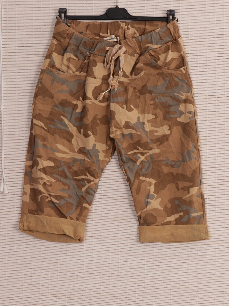 These Camel Italian Camouflage Print Knee Length Magic Shorts combine style and functionality with a distinctive camouflage design inspired by Italian aesthetics. Crafted for comfort and durability, their knee-length cut offers versatile wear for various activities. Ideal for those seeking a blend of fashion and practicality, these shorts provide a reliable fit and a unique look that stands out.
