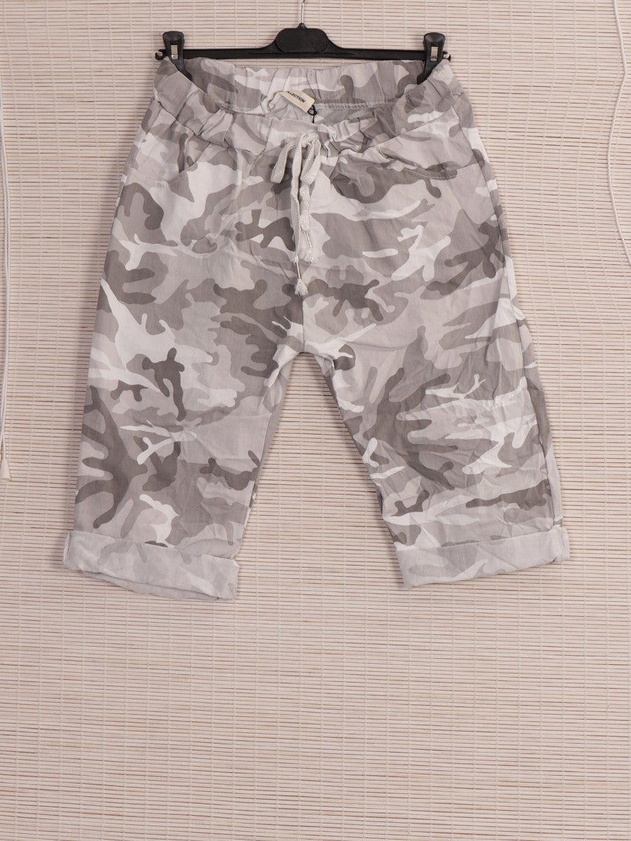These White Italian Camouflage Print Knee Length Magic Shorts combine style and functionality with a distinctive camouflage design inspired by Italian aesthetics. Crafted for comfort and durability, their knee-length cut offers versatile wear for various activities. Ideal for those seeking a blend of fashion and practicality, these shorts provide a reliable fit and a unique look that stands out.