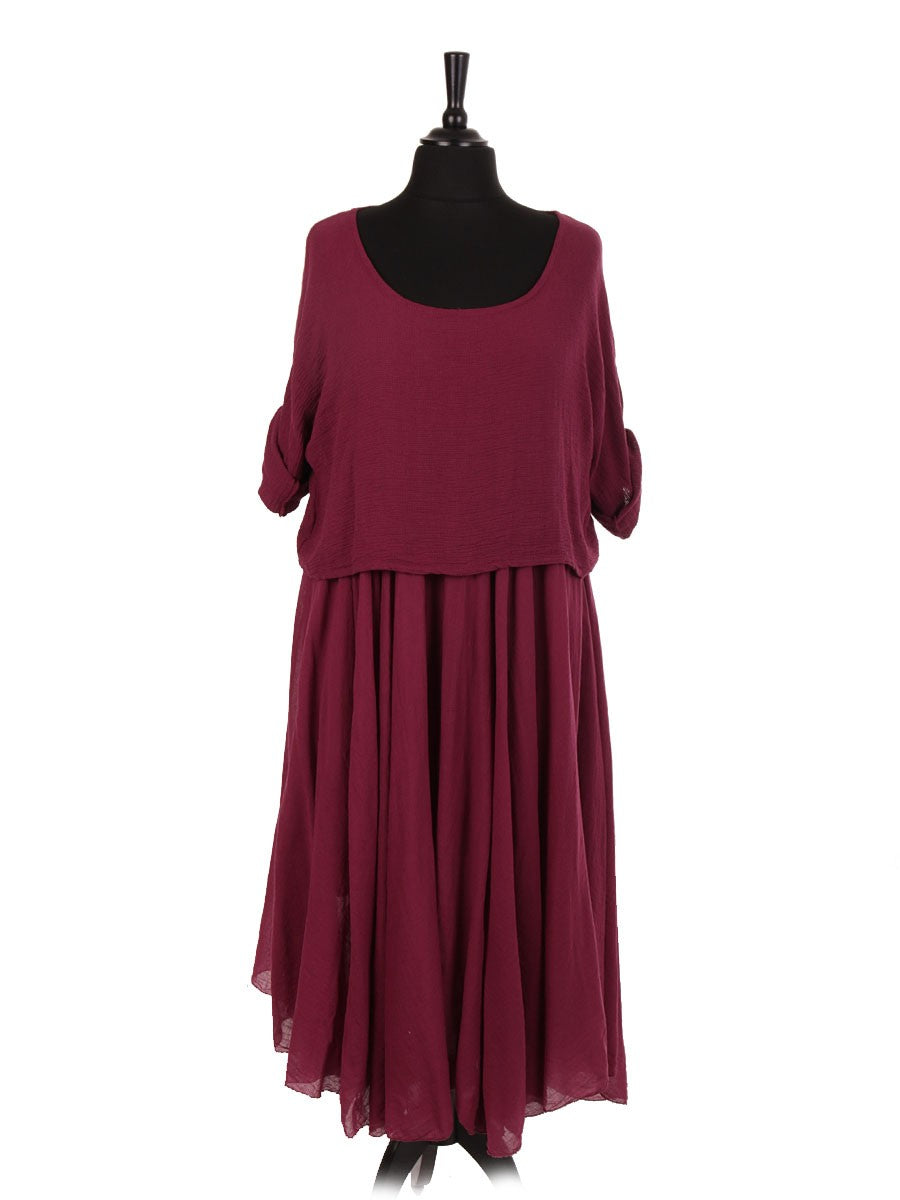 Experience elegance and comfort with this wine Italian Cotton 2 Piece Flare Maxi Dress featuring a coordinating shrug top. Crafted from premium Italian cotton, the dress offers breathable softness and a flattering flare silhouette that moves gracefully. The matching shrug adds versatility and a refined touch, perfect for layering in cooler settings or enhancing your ensemble. Ideal for sophisticated occasions, this set combines timeless style with expert tailoring for a polished, effortless look.