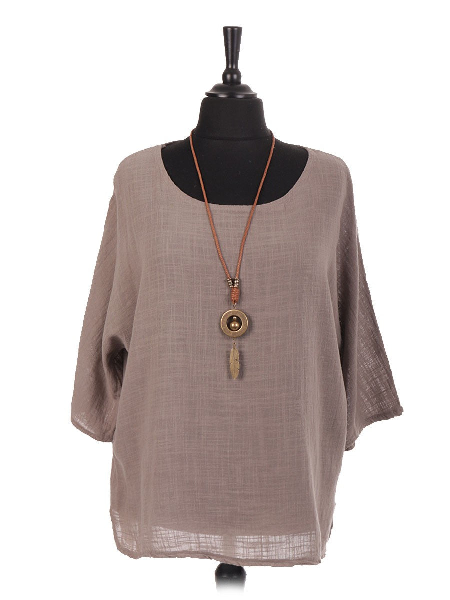 Crafted from premium Italian cotton, this mocha top offers exceptional breathability and comfort, ideal for all-day wear. Its refined design is complemented by an integrated necklace, adding a sophisticated touch without the need for extra accessories. Perfect for elevating both casual and semi-formal outfits with effortless elegance.