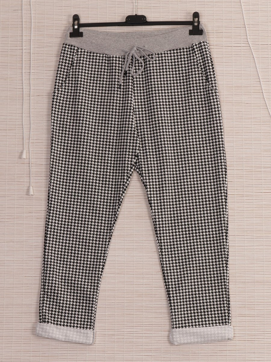 Crafted from high-quality cotton, these White Italian Dogtooth Printed Trousers combine classic patterning with breathable comfort. The distinctive dogtooth print adds a refined touch, making them suitable for both professional and casual settings. Designed for a tailored fit, they offer ease of movement while maintaining a sharp silhouette. Ideal for those seeking timeless style with everyday practicality.