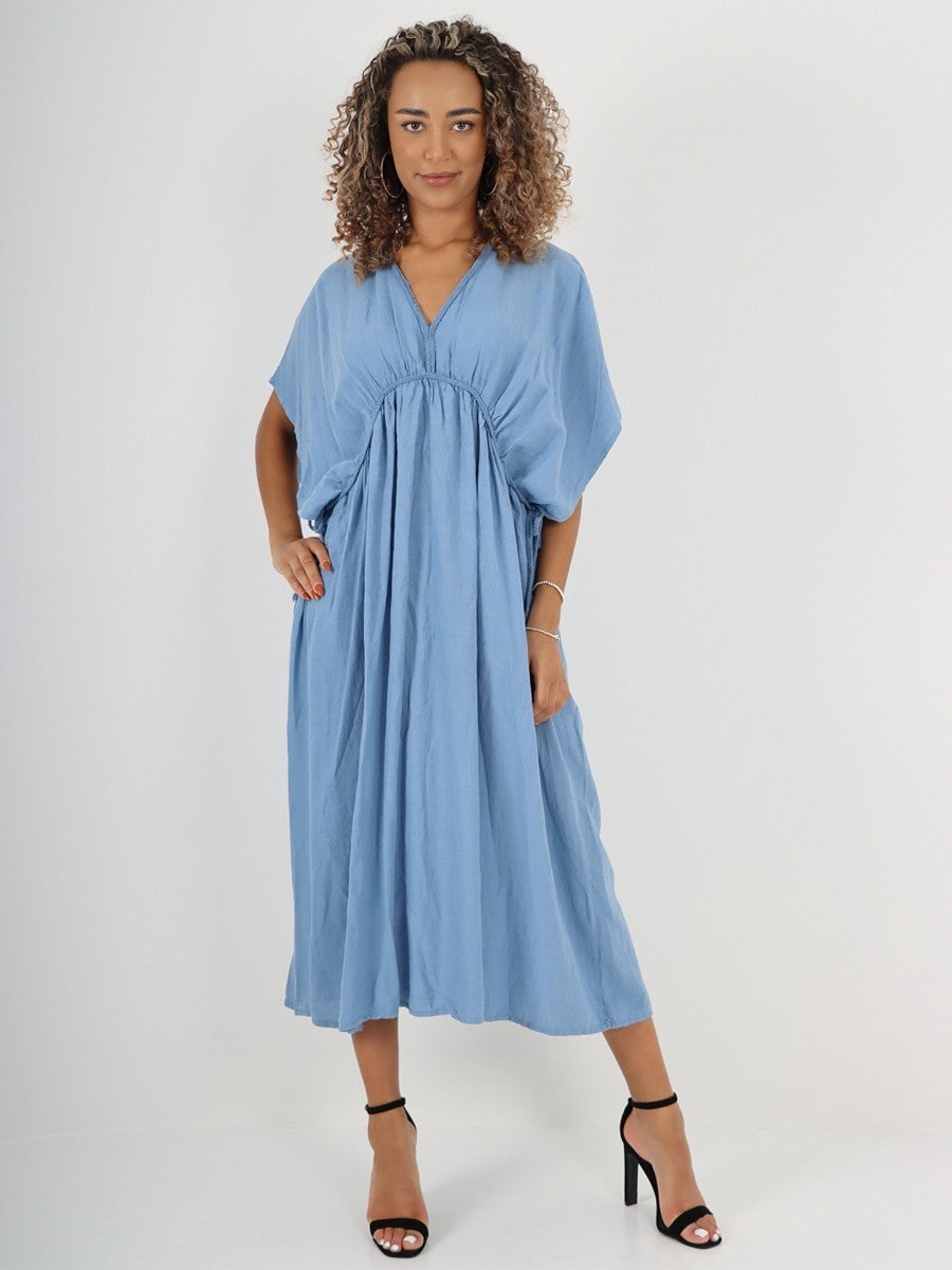 Crafted from breathable line, this cerise Italian Drawstring Flared Dress combines comfort with refined style. The adjustable drawstring waist ensures a tailored fit, while the flared silhouette offers graceful movement. Ideal for warm weather, its natural fabric promotes airflow, making it a sophisticated choice for both casual and elegant occasions.