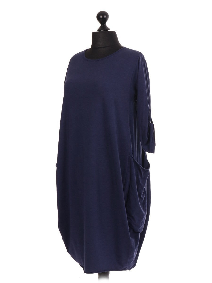 This navy Italian Lagenlook dress combines sophisticated design with practical functionality. Crafted with a relaxed, layered silhouette, it offers effortless style and comfort. The inclusion of pockets adds convenience without compromising the dress’s elegant drape. Ideal for those seeking a versatile piece that blends contemporary fashion with timeless Italian craftsmanship.