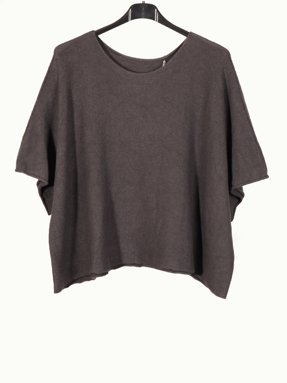 Italian Plain Knitted Batwing Crop Jumper crafted from a refined blend of viscose, polyamide, and polyester, this Italian Plain Knitted Batwing Jumper in dark grey offers both comfort and durability. Designed as one size to fit UK sizes 8 to 16, it features a relaxed batwing silhouette with a 22-inch length and 26-inch width from pit to pit, ensuring a flattering, adaptable fit. Ideal for layering, this jumper combines a minimalist style making it a versatile addition to your wardrobe.