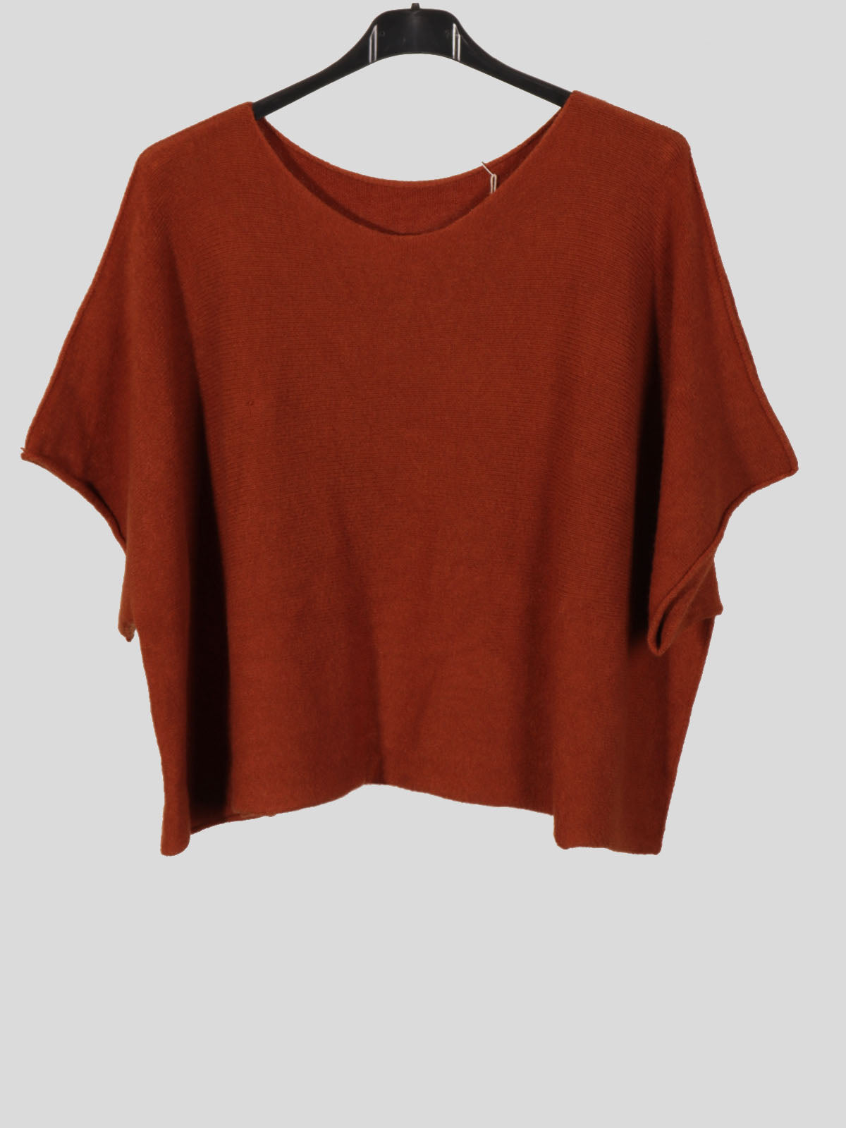 Italian Plain Knitted Batwing Crop Jumper crafted from a refined blend of viscose, polyamide, and polyester, this Italian Plain Knitted Batwing Jumper in rust offers both comfort and durability. Designed as one size to fit UK sizes 8 to 16, it features a relaxed batwing silhouette with a 22-inch length and 26-inch width from pit to pit, ensuring a flattering, adaptable fit. Ideal for layering, this jumper combines a minimalist style making it a versatile addition to your wardrobe.