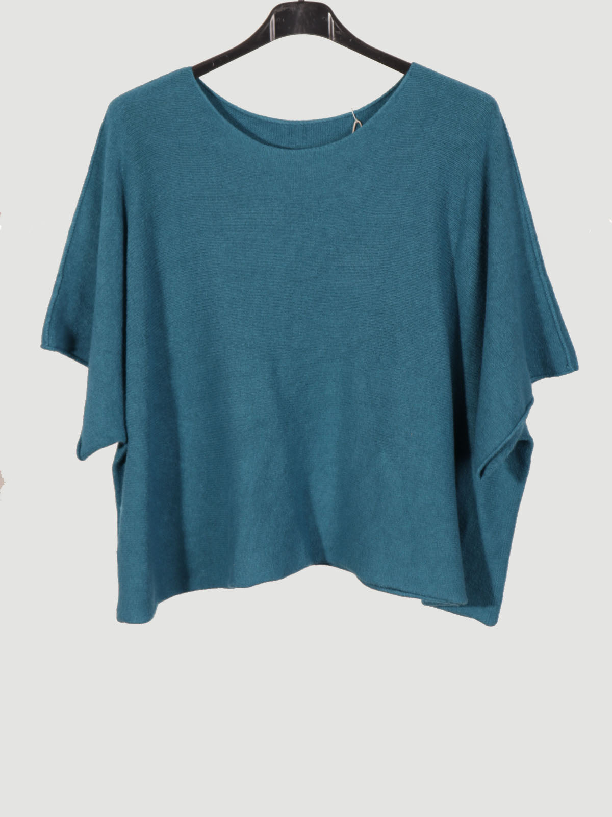 Italian Plain Knitted Batwing Crop Jumper crafted from a refined blend of viscose, polyamide, and polyester, this Italian Plain Knitted Batwing Jumper in teal offers both comfort and durability. Designed as one size to fit UK sizes 8 to 16, it features a relaxed batwing silhouette with a 22-inch length and 26-inch width from pit to pit, ensuring a flattering, adaptable fit. Ideal for layering, this jumper combines a minimalist style making it a versatile addition to your wardrobe.