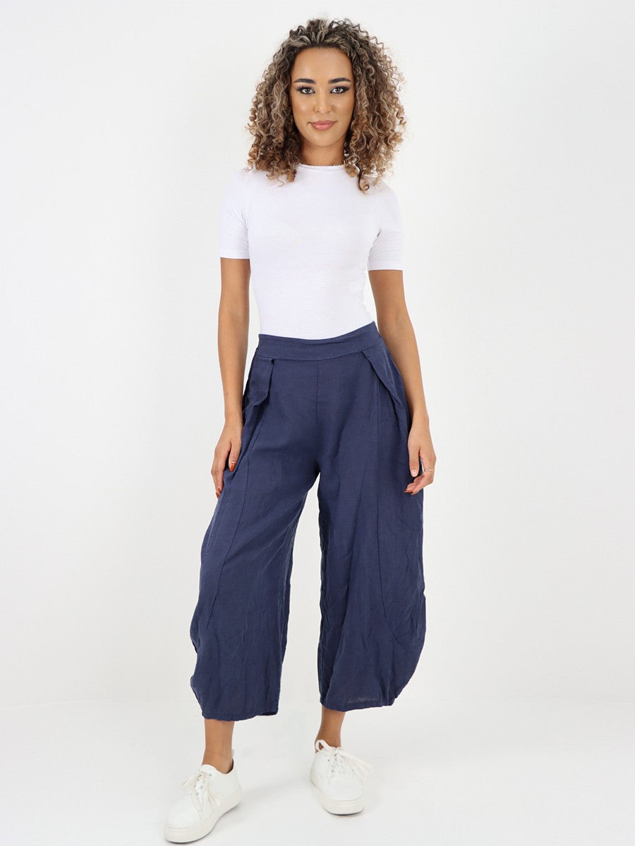 Crafted from premium Italian linen, these Navy plain layered pants offer exceptional breathability and a refined silhouette. The layered design adds subtle depth and texture, making them versatile for both casual and sophisticated looks. Ideal for warm weather, they combine comfort with expert tailoring to elevate your wardrobe essentials.