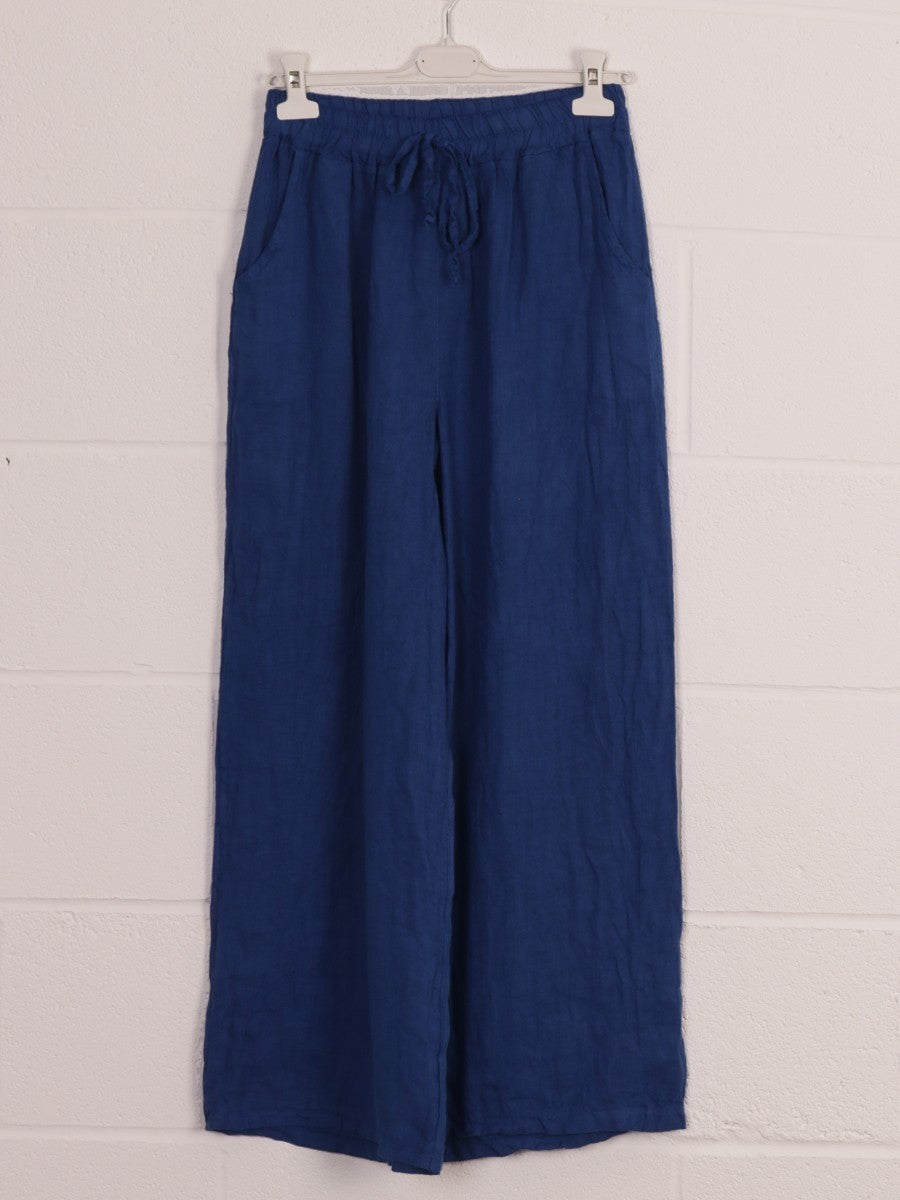 Crafted from high-quality Italian linen, these royal blue plain cerise culottes offer breathable comfort and a refined silhouette. Designed with practical side pockets, they combine functionality with effortless style, making them an ideal choice for warm-weather wardrobes. Their tailored cut ensures a flattering fit suitable for both casual and professional settings.