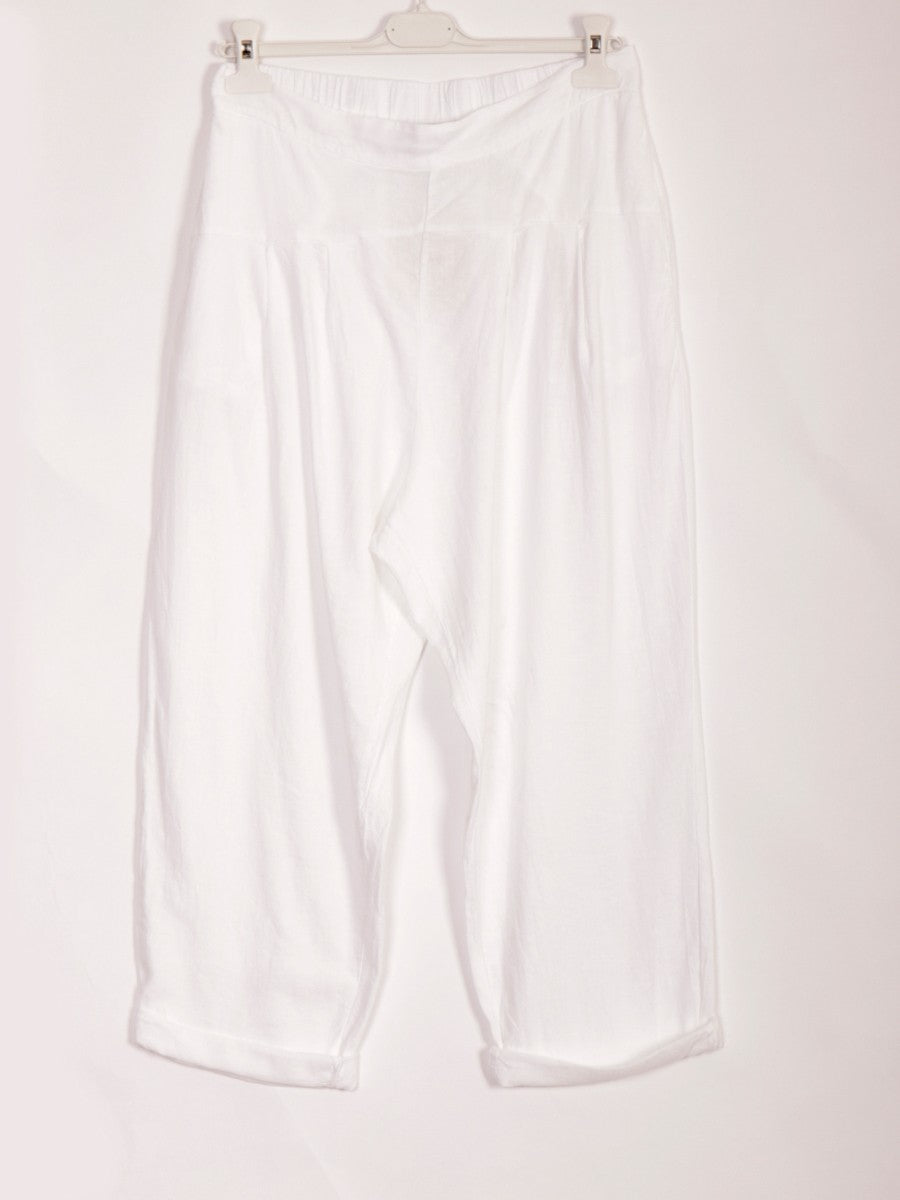 Crafted from premium linen, these white Italian pleated trousers offer a relaxed fit that ensures comfort and effortless style. The pleated design adds a refined touch, while the denim hue provides versatile wearability. Ideal for warm weather, they combine breathability with a sophisticated silhouette, perfect for both casual and smart occasions