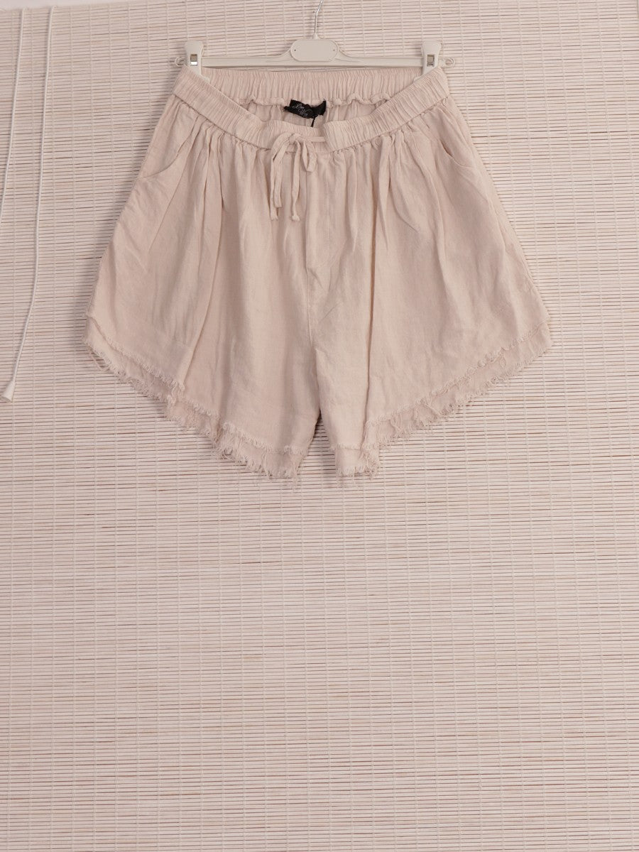 Crafted from premium Italian linen, these beige raw edge shorts offer a refined yet relaxed silhouette. The natural texture and breathable fabric ensure comfort in warm weather, while the raw edges add a contemporary, effortless finish. Practical side pockets enhance functionality without compromising style, making these shorts a sophisticated choice for casual and smart-casual wardrobes.