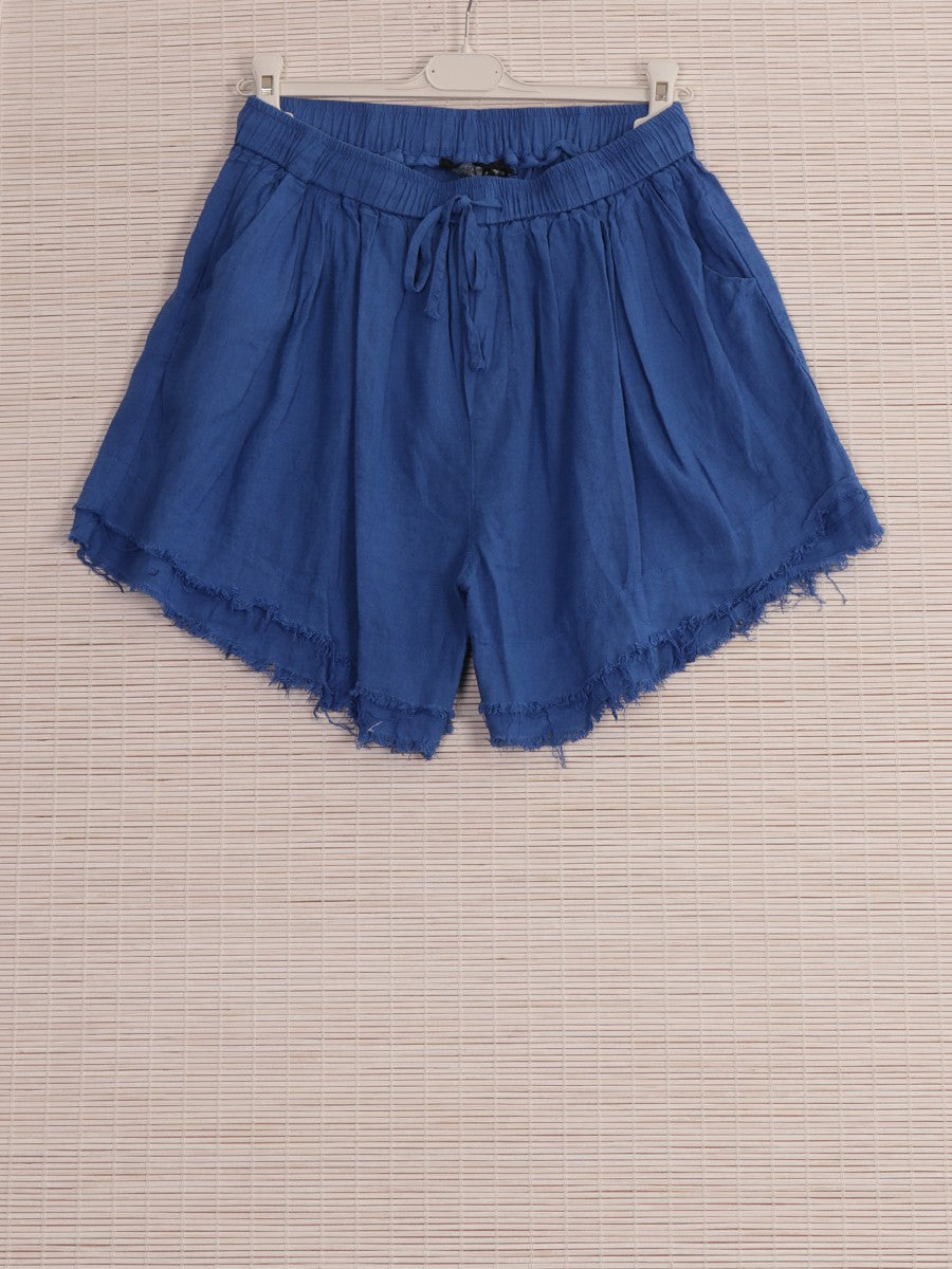 Crafted from premium Italian linen, these royal blue raw edge shorts offer a refined yet relaxed silhouette. The natural texture and breathable fabric ensure comfort in warm weather, while the raw edges add a contemporary, effortless finish. Practical side pockets enhance functionality without compromising style, making these shorts a sophisticated choice for casual and smart-casual wardrobes.