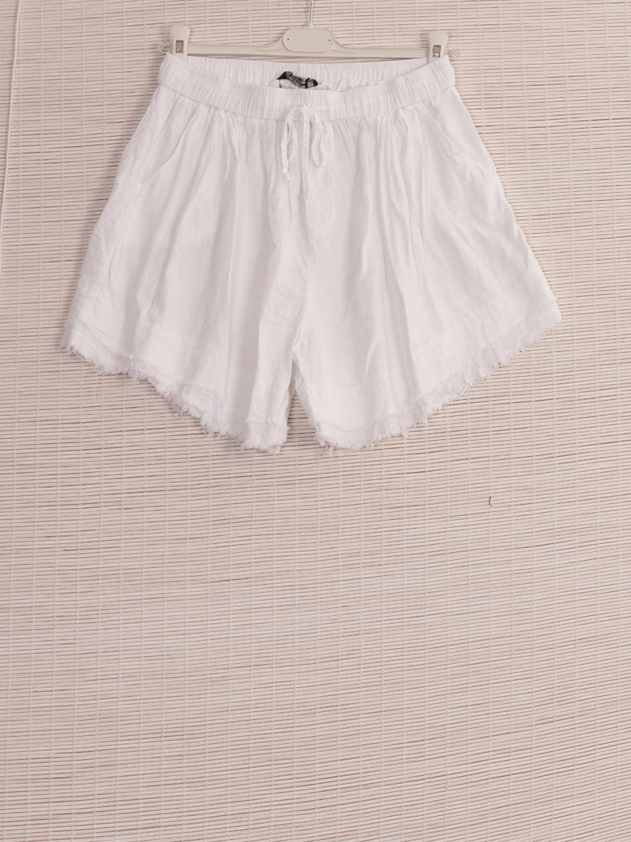 Crafted from premium Italian linen, these White raw edge shorts offer a refined yet relaxed silhouette. The natural texture and breathable fabric ensure comfort in warm weather, while the raw edges add a contemporary, effortless finish. Practical side pockets enhance functionality without compromising style, making these shorts a sophisticated choice for casual and smart-casual wardrobes.
