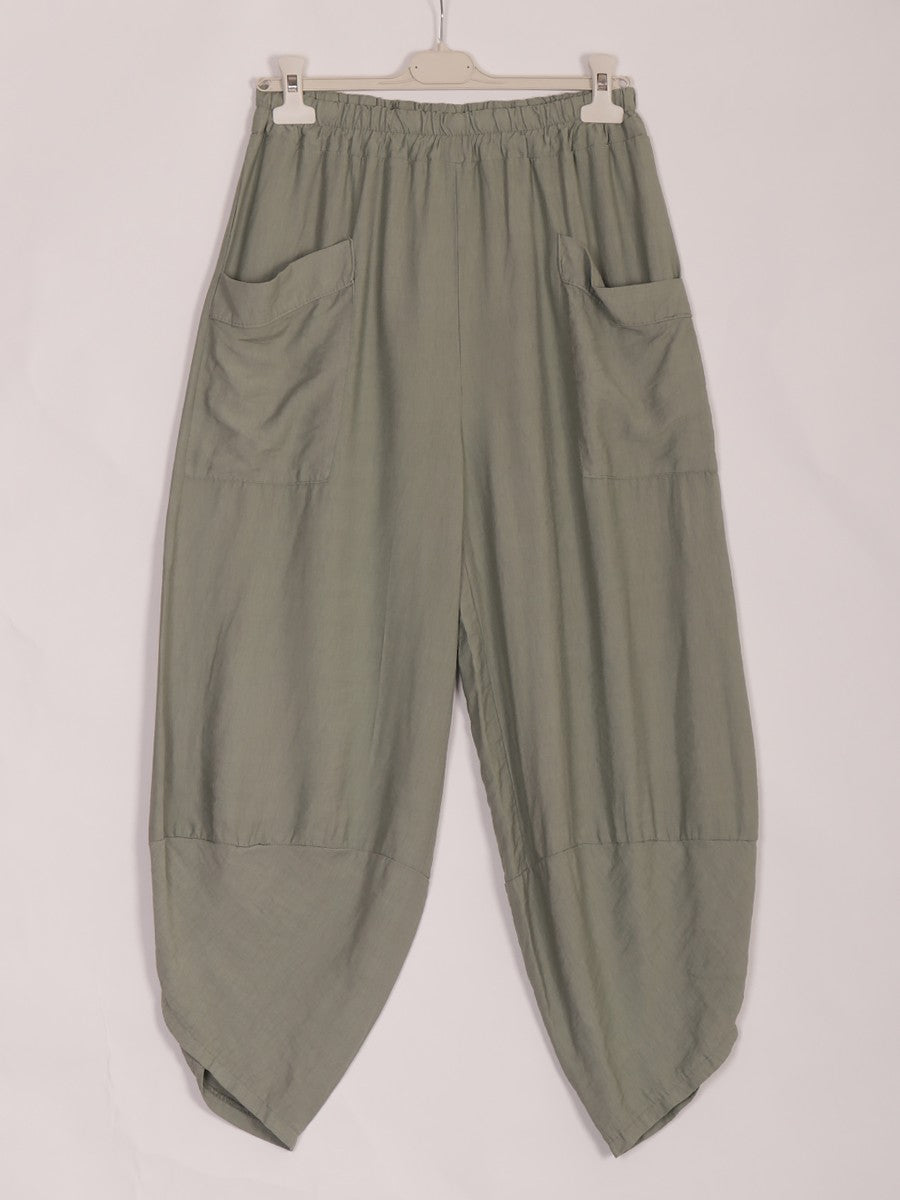 These Khaki Italian Relaxed Fit Harem Trousers combine comfort with sophisticated style. Designed with a relaxed silhouette and practical front pockets, they offer ease of movement and convenient storage. Crafted to provide a modern yet timeless look, these trousers are ideal for those seeking both functionality and elegance in their wardrobe.