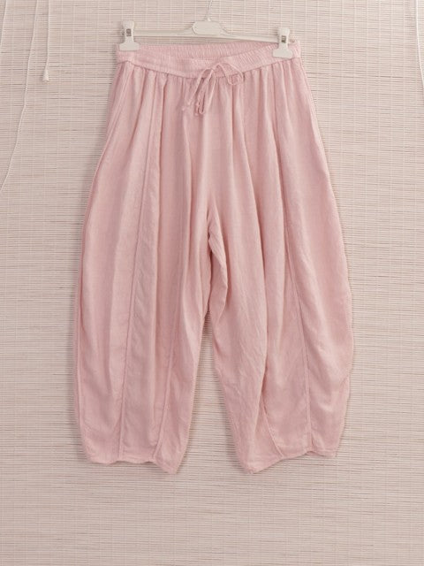 Experience effortless style and comfort with these baby pink Italian Relaxed Fit Linen Capri Trousers. Crafted from breathable linen, they offer a lightweight feel perfect for warmer days. The relaxed fit ensures ease of movement, while the cropped length adds a modern touch. Ideal for casual outings or smart-casual occasions, these trousers combine Italian craftsmanship with timeless design for a versatile wardrobe staple.