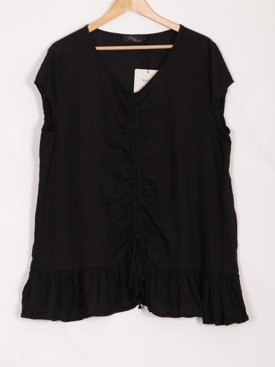 Crafted from breathable linen, this black Italian Ruched Front Linen Top combines timeless elegance with expert tailoring. The ruched front detail enhances the silhouette, offering a flattering fit that complements various body types. Ideal for warm weather, its lightweight fabric ensures comfort while maintaining a polished look suitable for both casual and refined occasions.