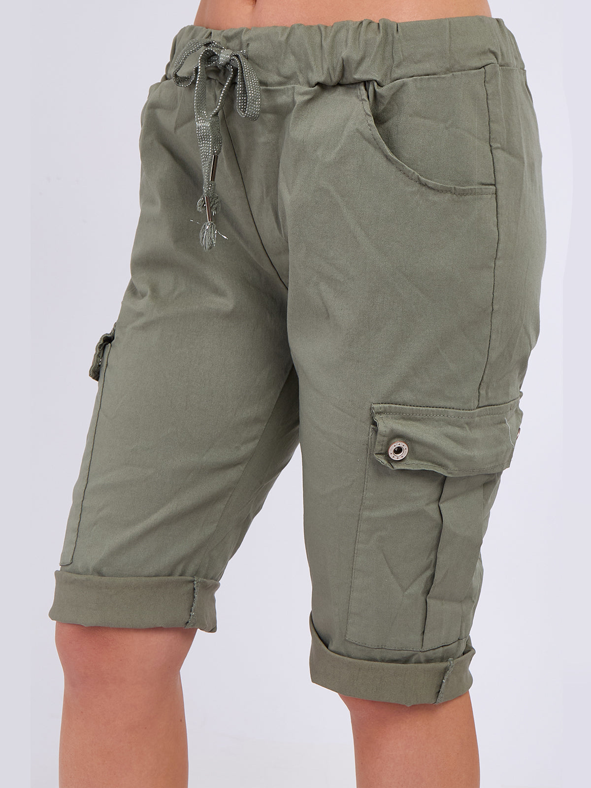 These Italian Side Pockets Cargo Khaki Shorts in Khaki combine practical design with refined style. Crafted for comfort and versatility, they feature spacious side pockets ideal for carrying essentials securely. The mocha shade offers a sophisticated, neutral tone that pairs effortlessly with various outfits, making these shorts a smart choice for both casual and active wear. Their tailored fit and durable fabric ensure lasting wear and a polished appearance. Perfect for those seeking functionality without compromising on elegance.