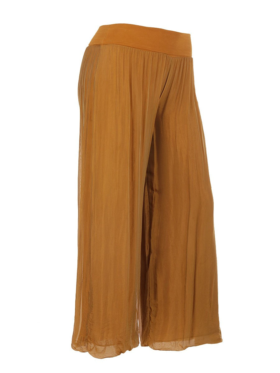 Experience the perfect blend of luxury and comfort with these Italian rust silk trousers. Crafted from premium silk, they offer a smooth, breathable feel ideal for all-day wear. The elasticated waist ensures a tailored fit while allowing ease of movement, making them suitable for both relaxed and refined occasions. Elevate your wardrobe with this sophisticated yet practical piece designed for discerning tastes.