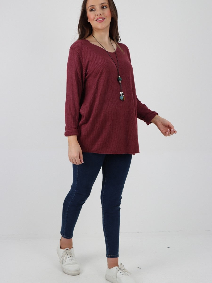 Experience refined comfort with this wine Italian soft knitted jumper top, featuring a classic round neck design enhanced by a delicate necklace detail. Crafted from premium soft yarns, it offers exceptional warmth and breathability, making it ideal for layering or standalone wear. Its expert tailoring ensures a flattering fit that complements any wardrobe, combining timeless style with everyday practicality. Perfect for those seeking sophisticated knitwear with subtle elegance.