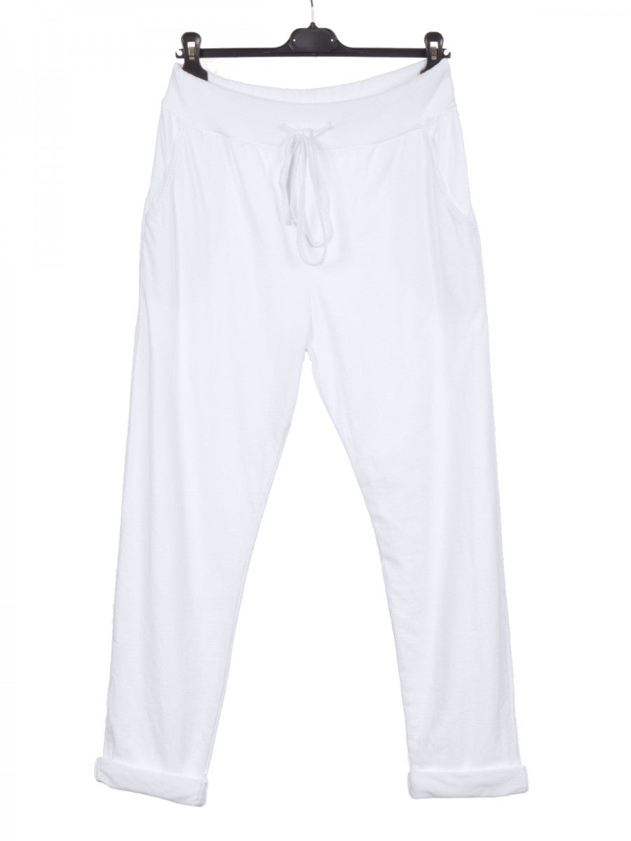 Crafted from high-quality cotton, these White Italian solid color trousers offer both comfort and durability. Designed with practical side pockets, they provide convenient storage without compromising style. Their tailored fit and classic design make them a versatile addition to any wardrobe, suitable for both casual and formal occasions. Experience refined craftsmanship and timeless elegance with these essential trousers.