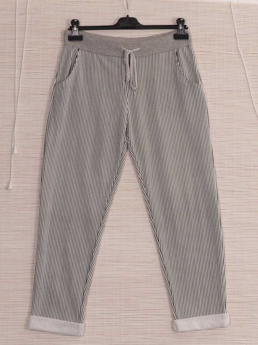 Crafted from breathable cotton, these black Italian striped print trousers combine classic style with exceptional comfort. The refined vertical stripes elongate the silhouette, making them ideal for both casual and smart occasions. Expertly tailored for a flattering fit, they offer versatility and timeless appeal in your wardrobe.