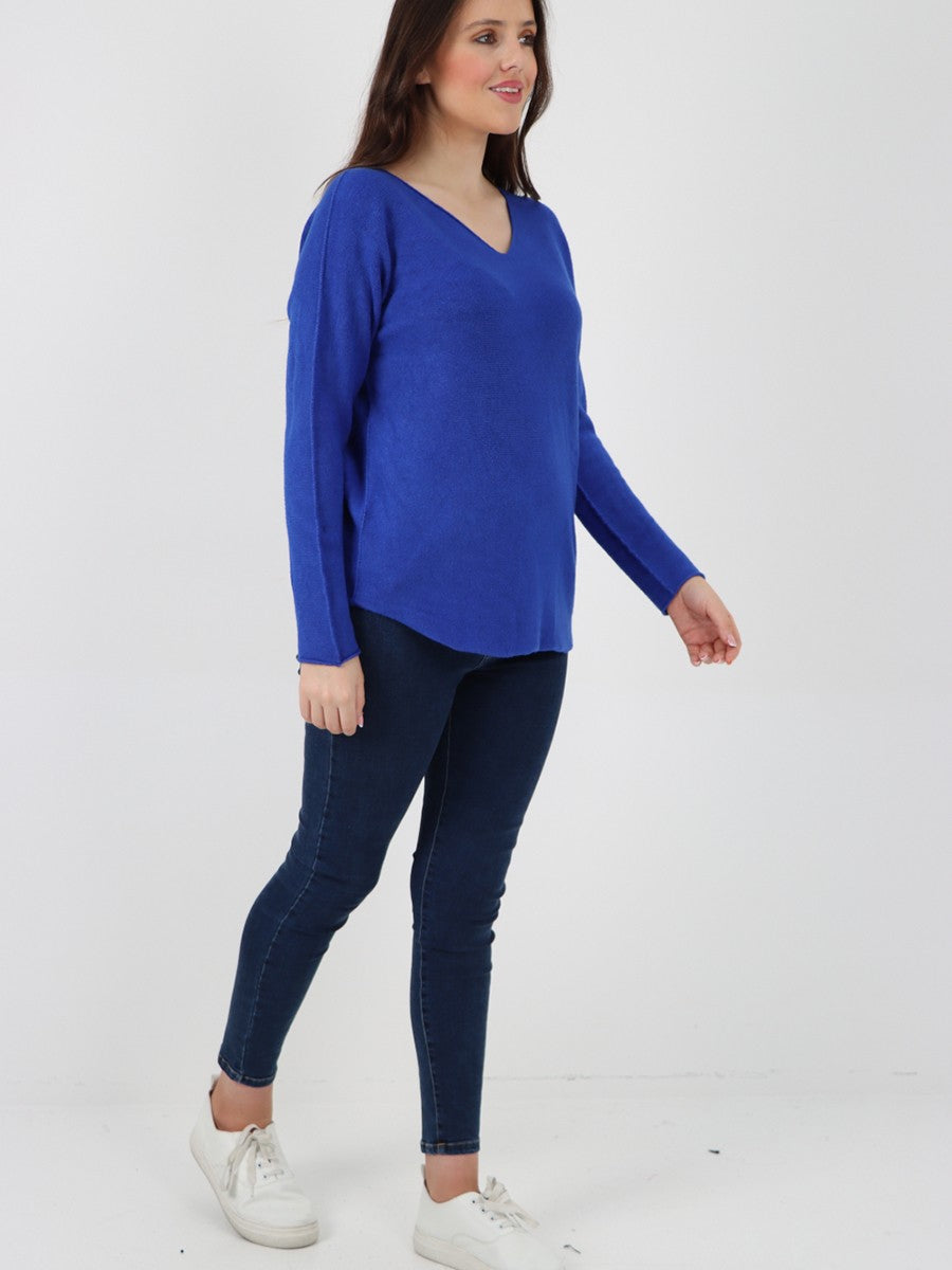 Expertly crafted in Italy, this royal blue V-neck soft knitted jumper is the perfect addition to any wardrobe. Made with the highest quality materials, it offers both style and comfort. Elevate your look with this versatile piece that is sure to become a staple in your wardrobe