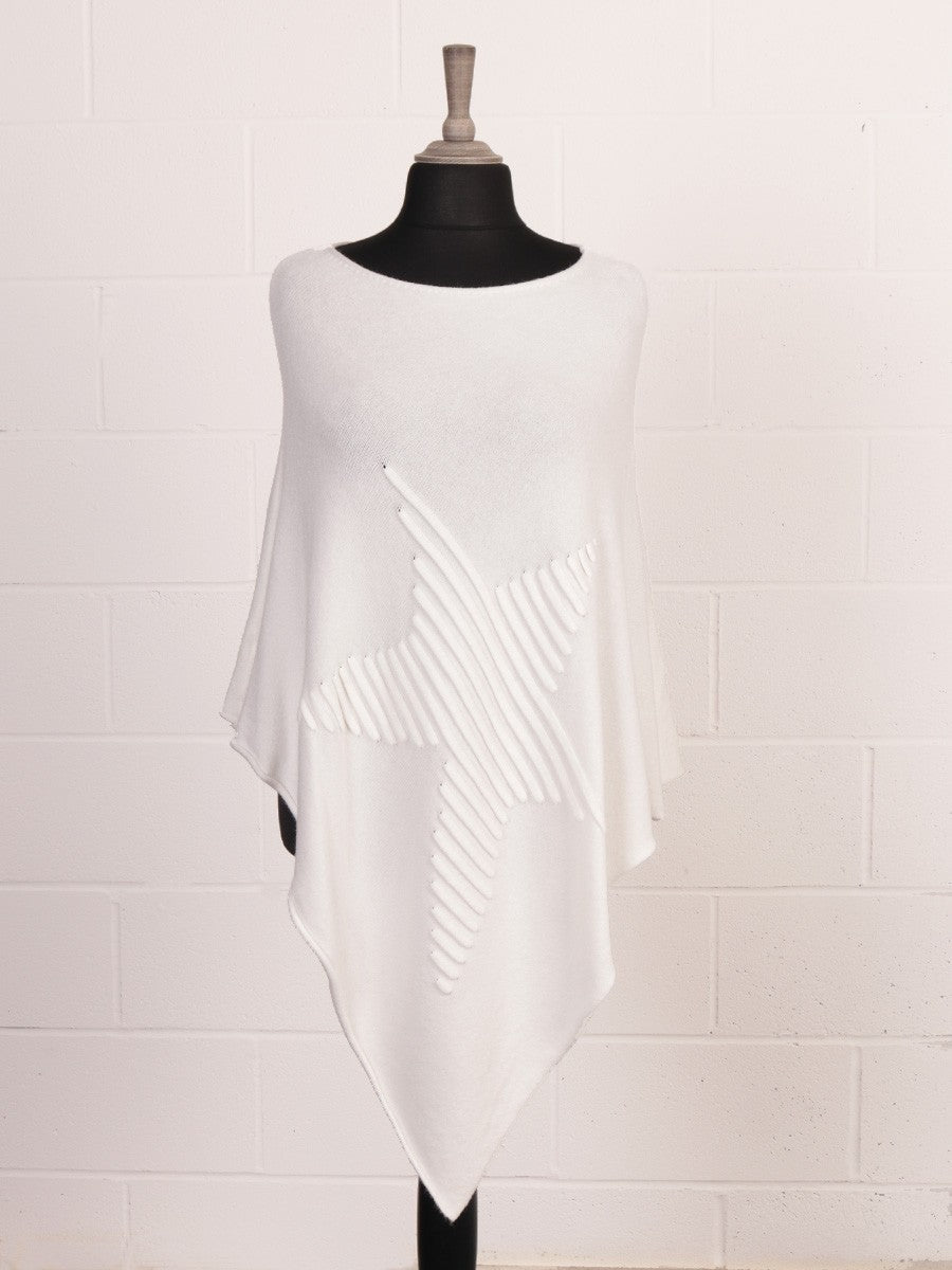 Crafted from a premium Italian wool blend, this white ribbed star poncho offers exceptional warmth and refined texture. Its structured ribbing enhances durability while providing a flattering silhouette. Ideal for layering, it combines timeless style with expert craftsmanship, making it a versatile addition to any sophisticated wardrobe.