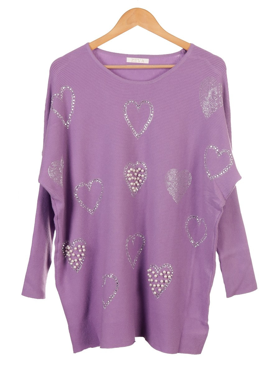 Elevate your knitwear collection with this lilac ribbed jumper featuring delicate pearl and diamante heart details. Crafted for both comfort and style, its textured fabric offers a flattering fit while the subtle embellishments add a refined, feminine touch. Perfect for layering or wearing on its own, this jumper combines classic design with expert detailing to enhance your everyday wardrobe.